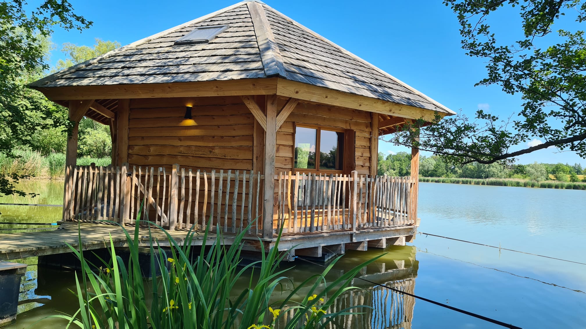 On adore cette cabane pour sa jolie forme hexagonale et ses baies vitrées qui vous offre une vue panoramique sur tout l’étang.